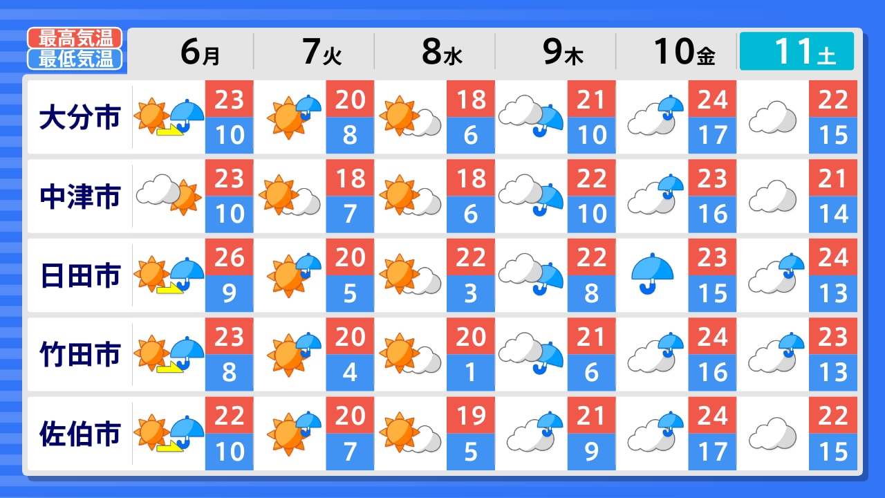 中津市 国東市 別府市 大分市 由布市 日田市 玖珠町 竹田市 豊後大野市 佐伯市
