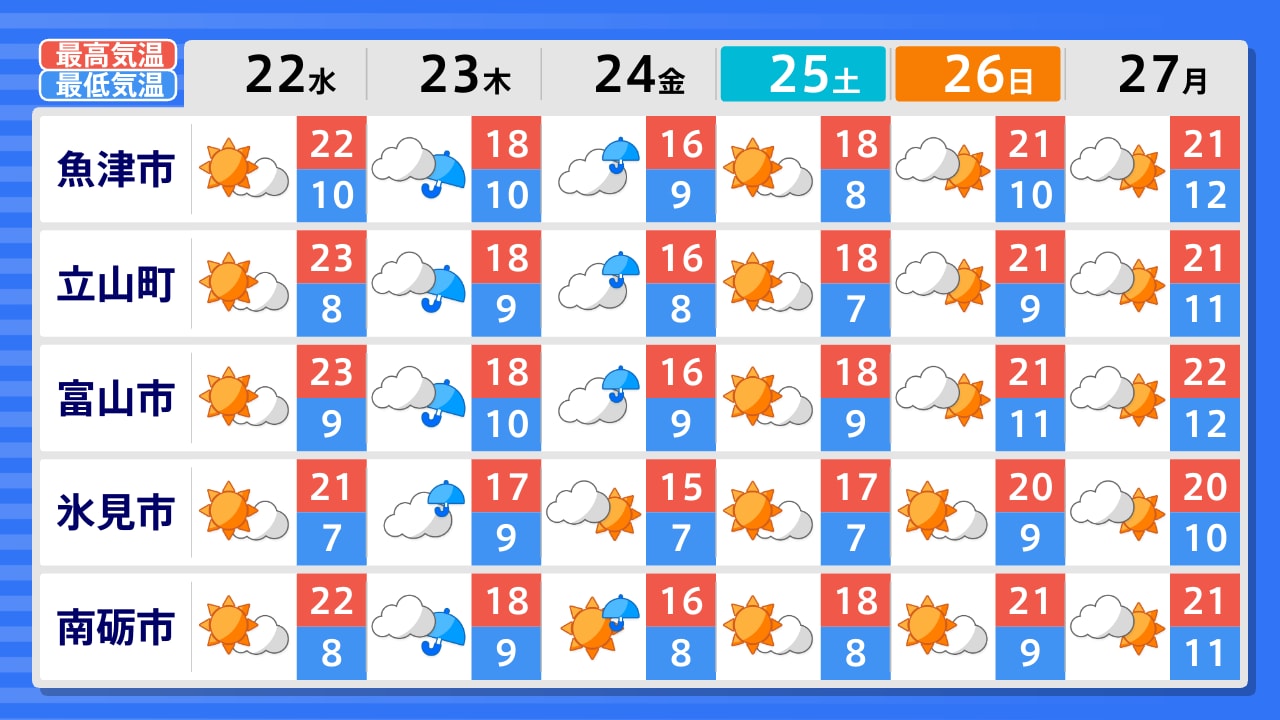 氷見市 高岡市 南砺市 富山市 朝日町 魚津市 立山町