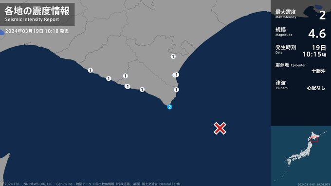 震度2 十勝沖 10:15ごろ
