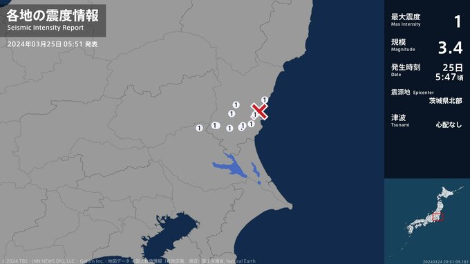 震度1 茨城県北部 05:47ごろ