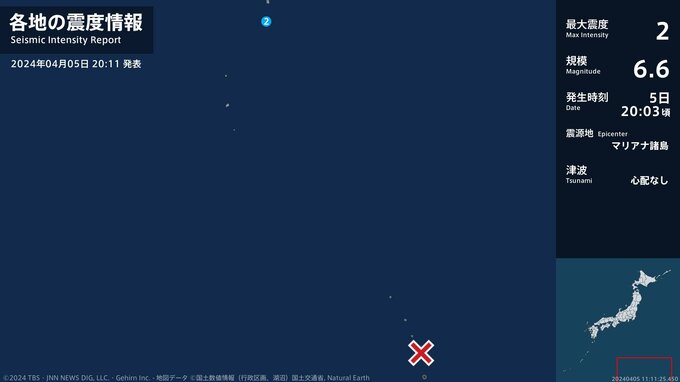 震度2 マリアナ諸島 20:04ごろ