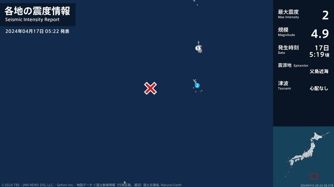 震度2 父島近海 05:19ごろ