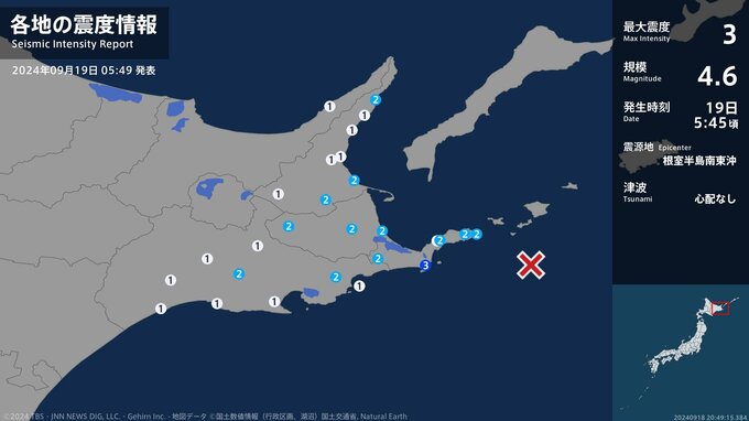 | 緯度経度 | 北緯43.2度 / 東経146.1度 |