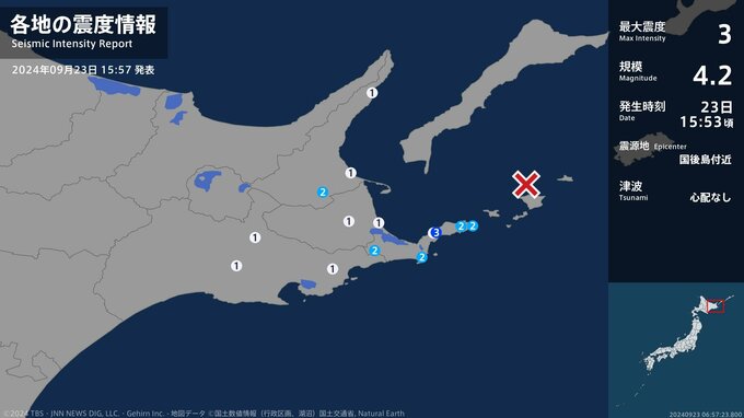 | 緯度経度 | 北緯43.6度 / 東経146.1度 |