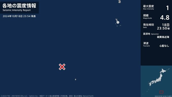 震度1 硫黄島近海 23:50ごろ