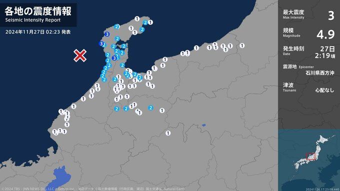 | 緯度経度 | 北緯37.0度 / 東経136.4度 |