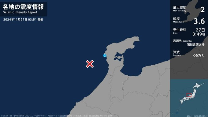 | 緯度経度 | 北緯37.0度 / 東経136.4度 |