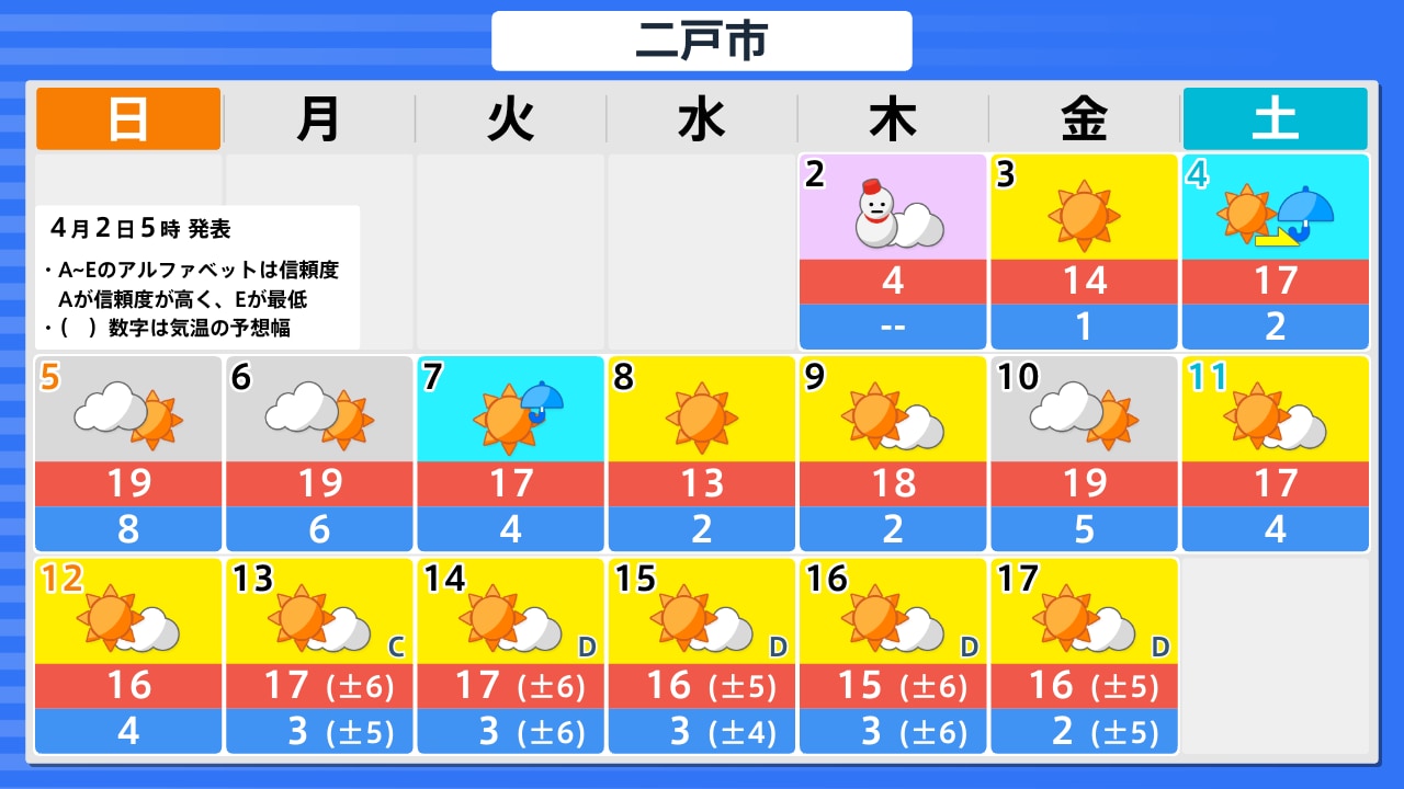 4月2日(木)の天気