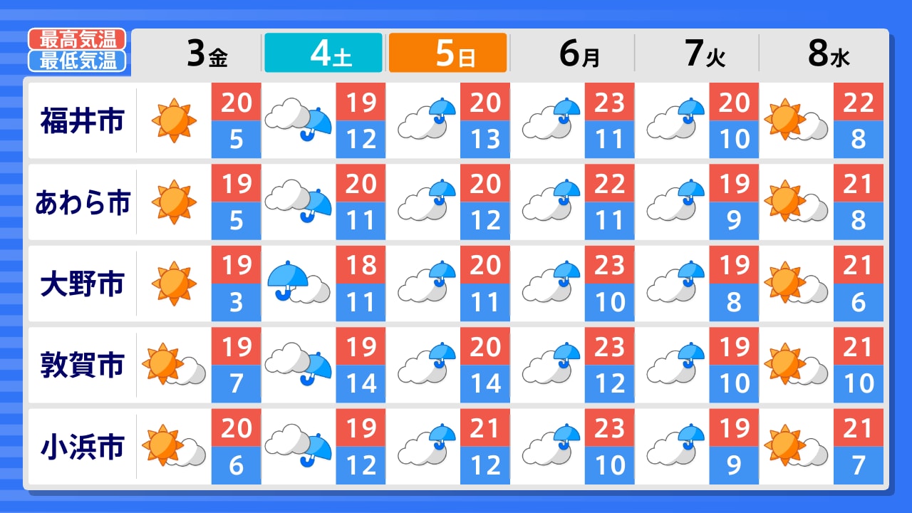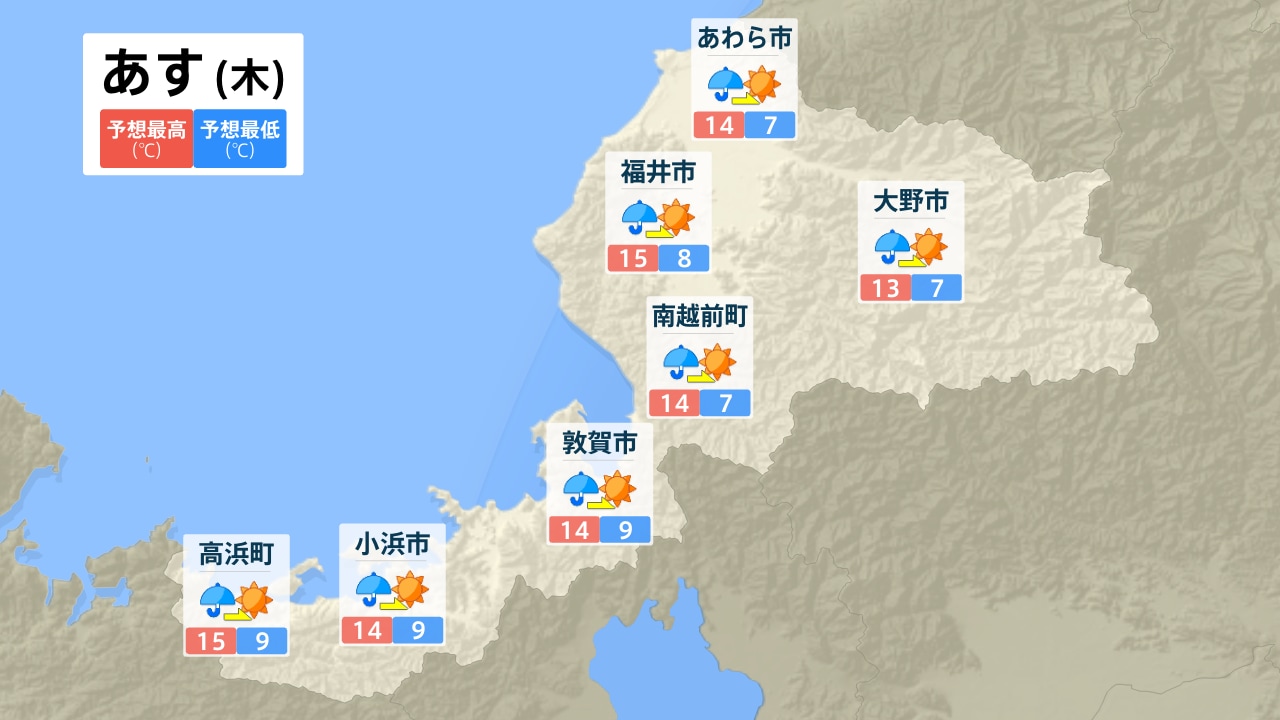 あわら市 大野市 福井市 南越前町 敦賀市 小浜市 高浜町