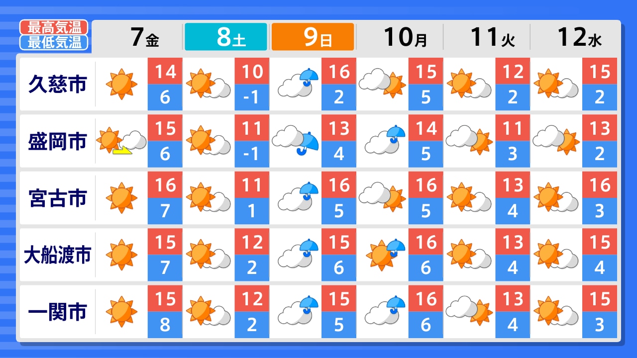 八幡平市 二戸市 久慈市 雫石町 盛岡市 岩泉町 宮古市 花巻市 遠野市 釜石市 一関市 大船渡市