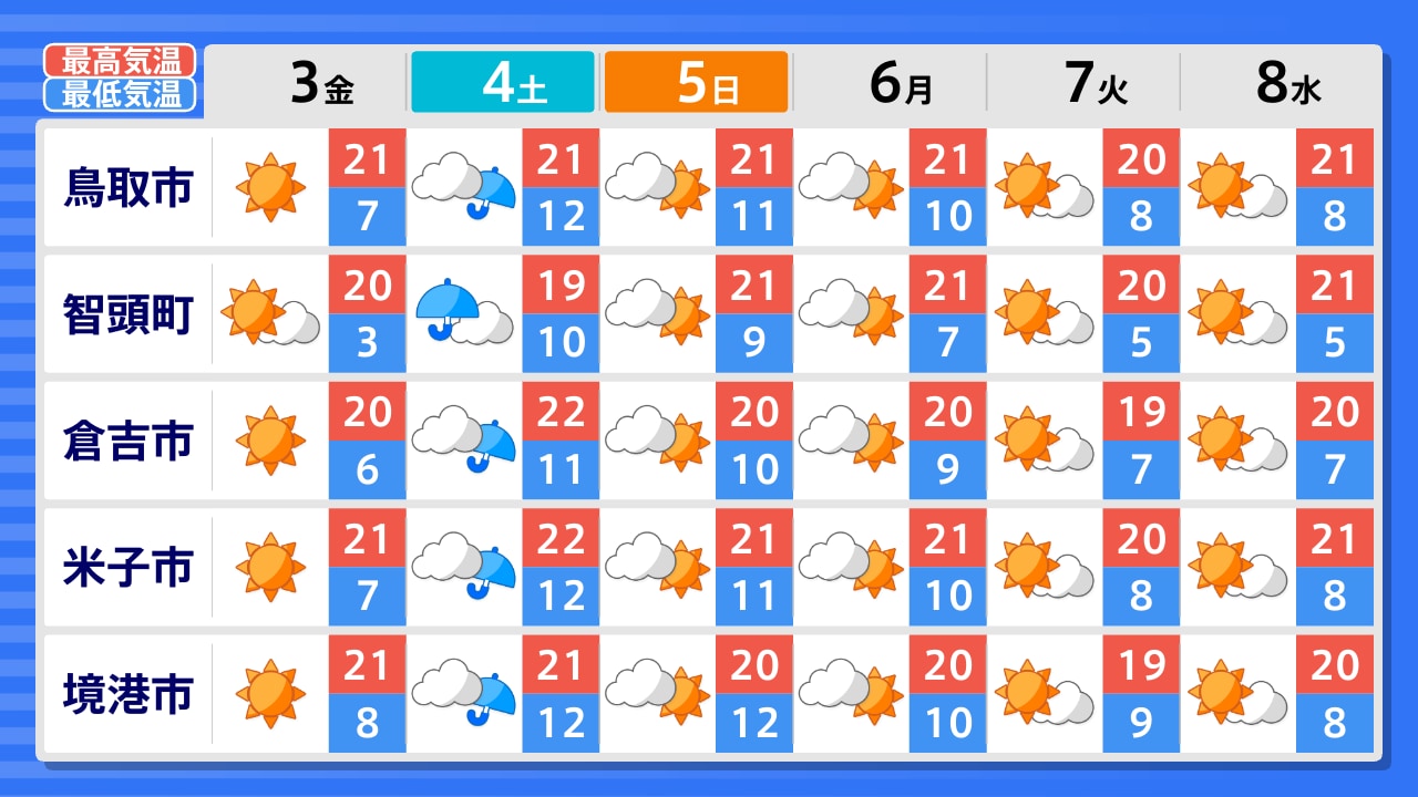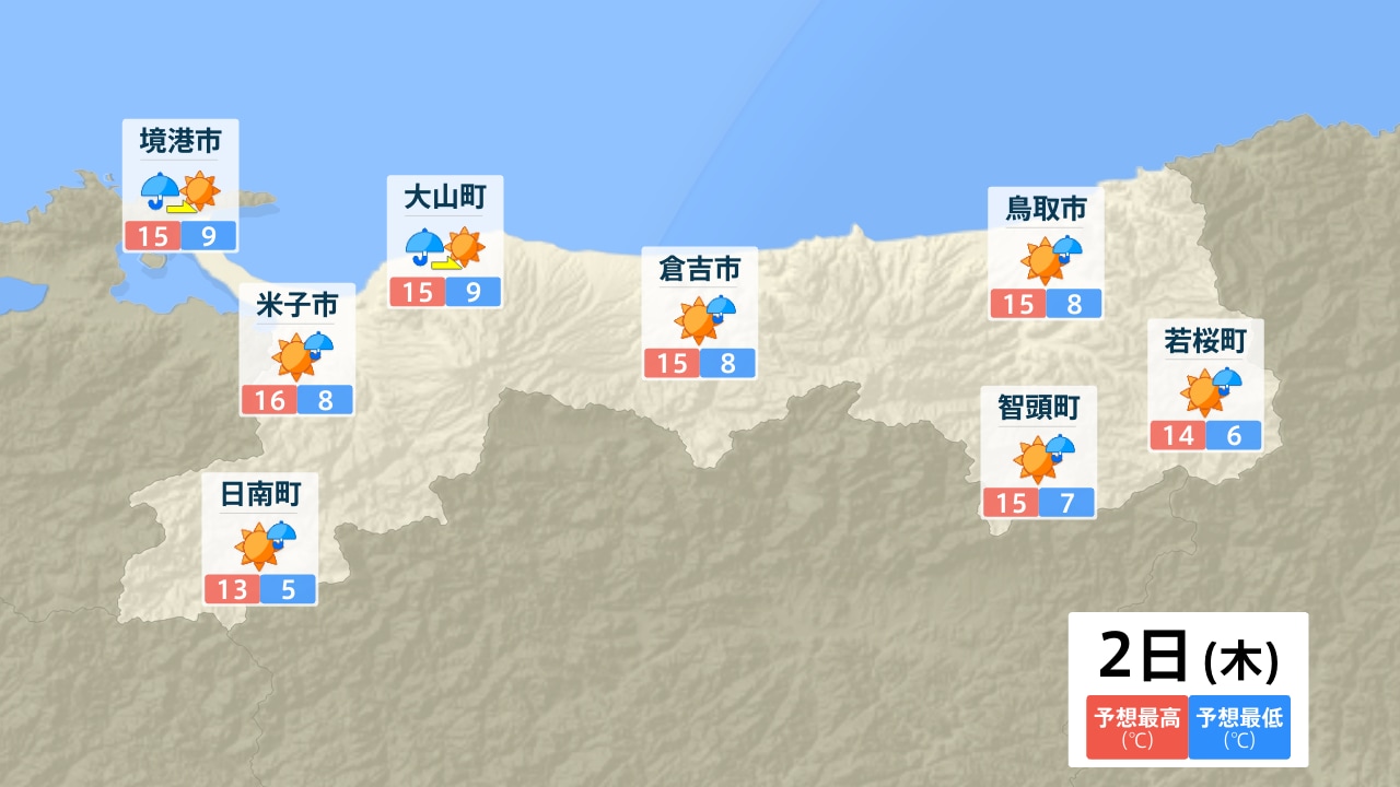 境港市 米子市 日南町 大山町 倉吉市 鳥取市 智頭町 若桜町