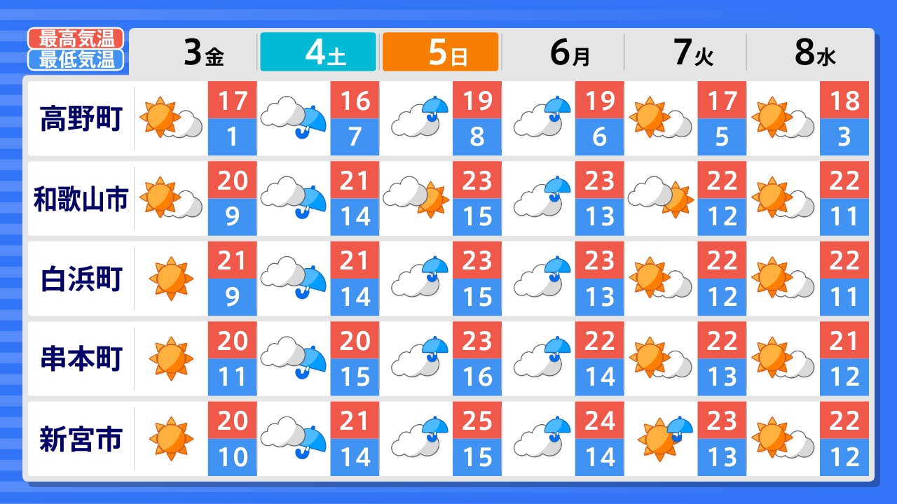和歌山市 有田川町 御坊市 高野町 田辺市 白浜町 すさみ町 北山村 新宮市 串本町