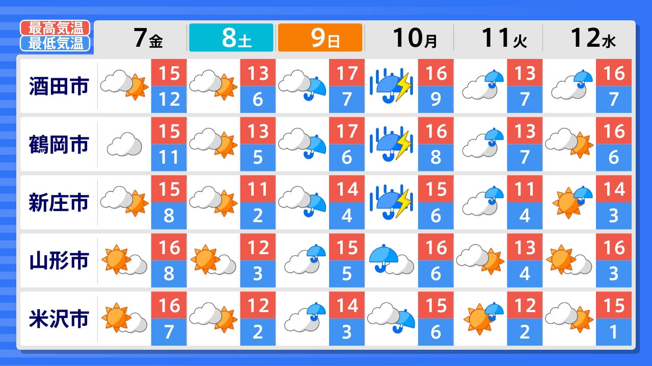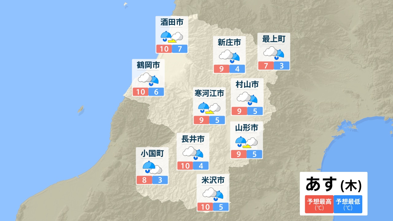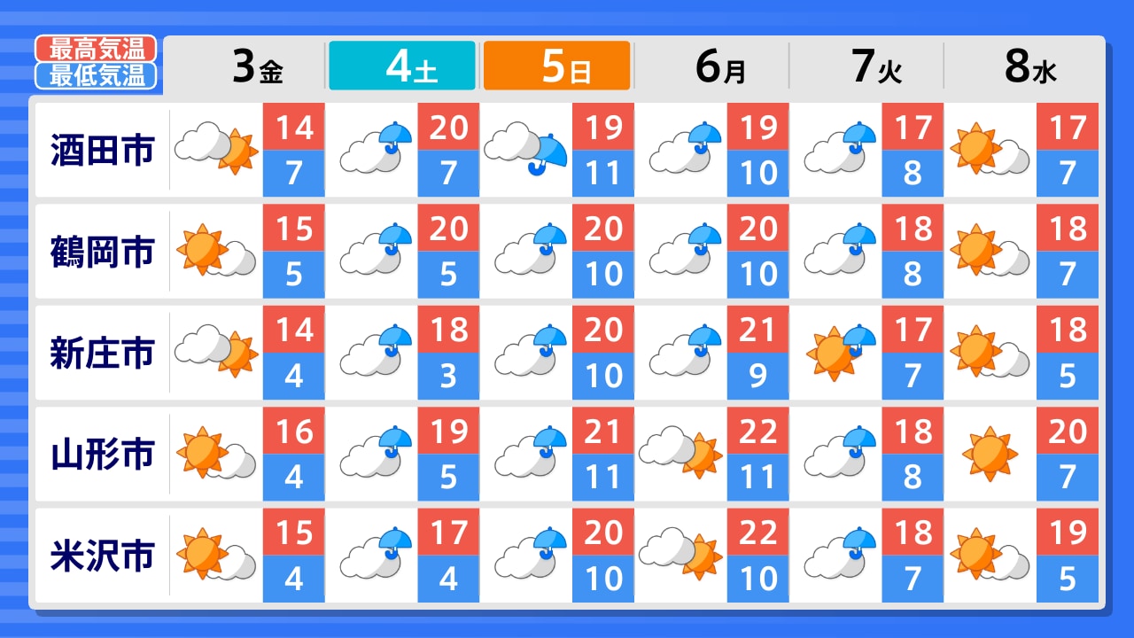 酒田市 新庄市 最上町 鶴岡市 寒河江市 村山市 山形市 長井市 小国町 米沢市