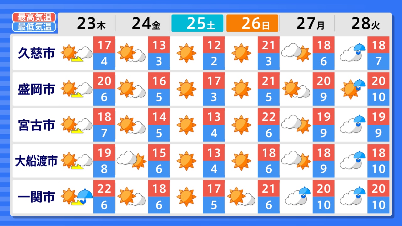 八幡平市 二戸市 久慈市 雫石町 盛岡市 岩泉町 宮古市 花巻市 遠野市 釜石市 一関市 大船渡市