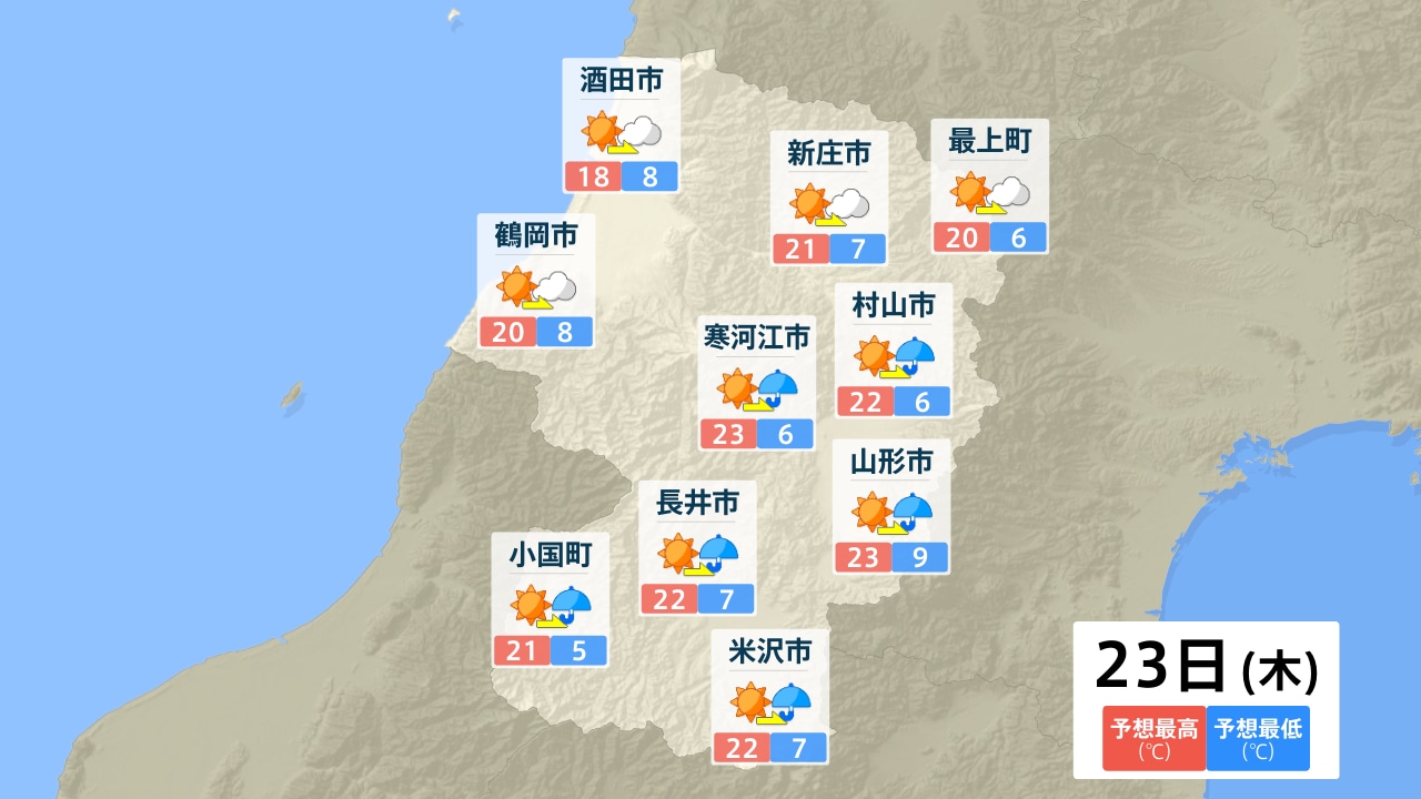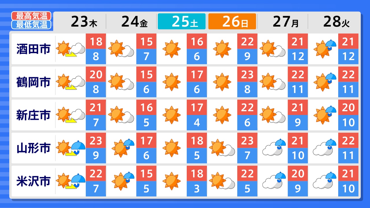 酒田市 新庄市 最上町 鶴岡市 寒河江市 村山市 山形市 長井市 小国町 米沢市