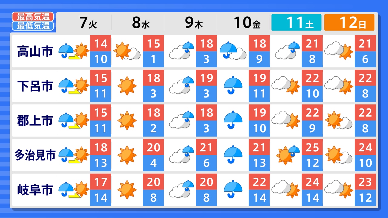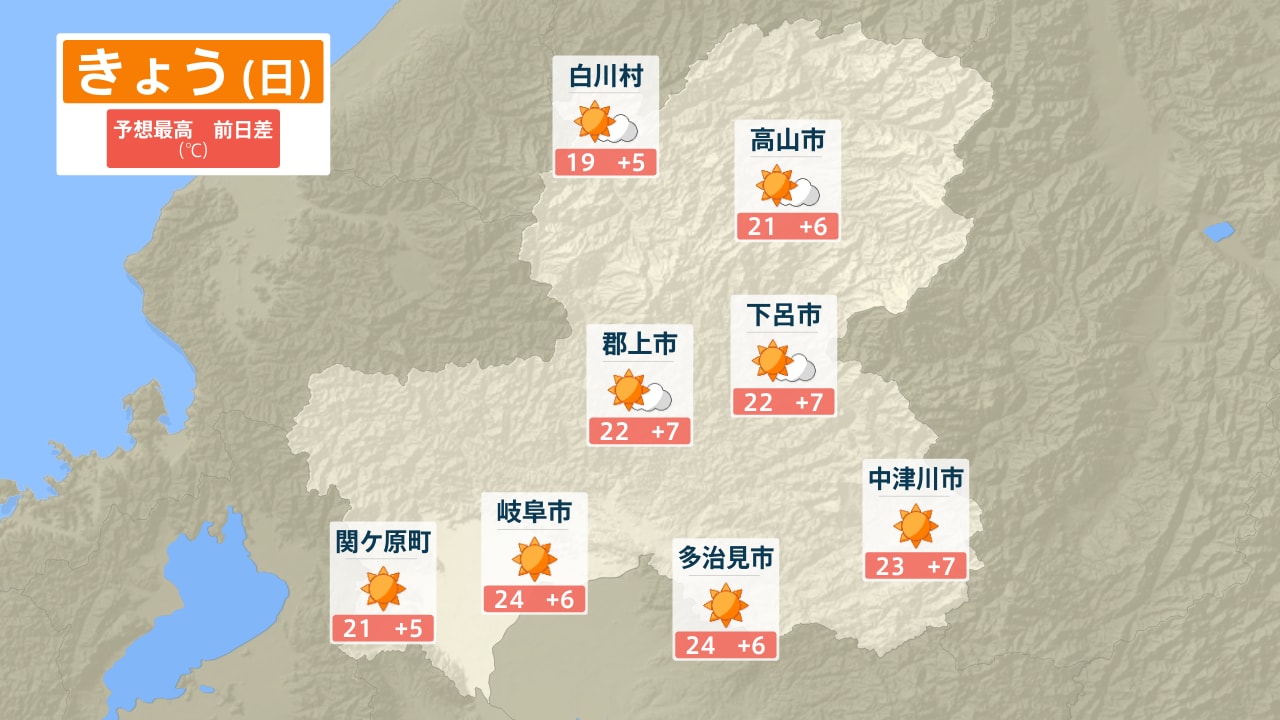 白川村 高山市 下呂市 郡上市 中津川市 多治見市 岐阜市 関ケ原町