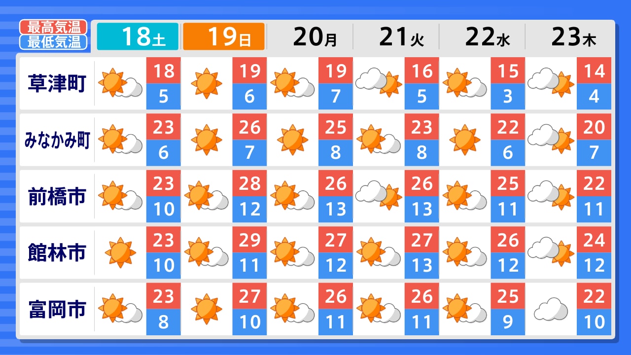 草津町 みなかみ町 片品村 渋川市 前橋市 桐生市 高崎市 富岡市 伊勢崎市 館林市