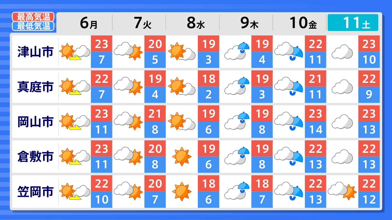 真庭市 新見市 高梁市 笠岡市 倉敷市 津山市 美作市 岡山市 備前市