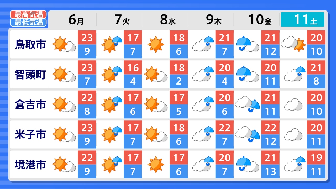 境港市 米子市 日南町 大山町 倉吉市 鳥取市 智頭町 若桜町