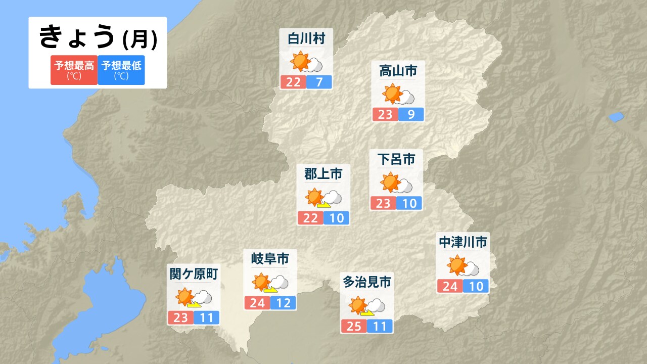 白川村 高山市 下呂市 郡上市 中津川市 多治見市 岐阜市 関ケ原町