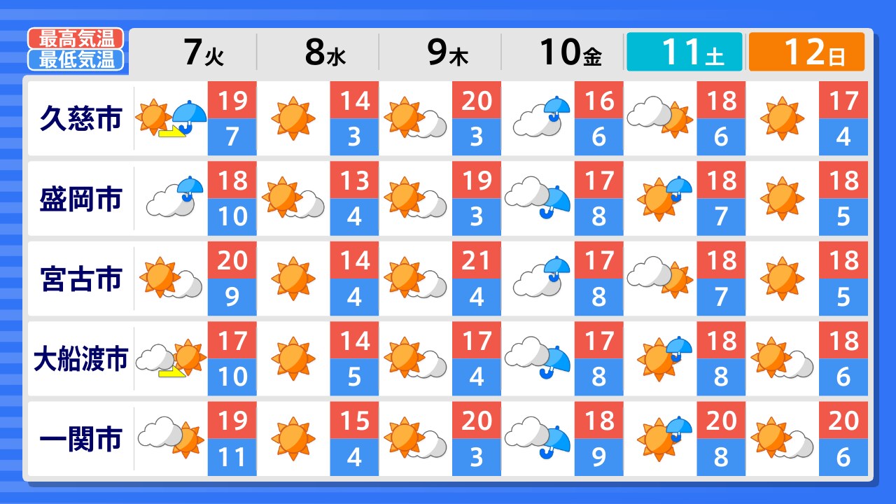 八幡平市 二戸市 久慈市 雫石町 盛岡市 岩泉町 宮古市 花巻市 遠野市 釜石市 一関市 大船渡市
