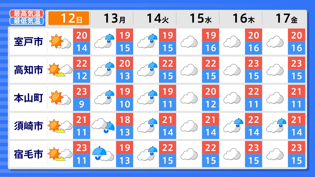 梼原町 四万十町 宿毛市 土佐清水市 須崎市 本山町 高知市 安芸市 馬路村 室戸市