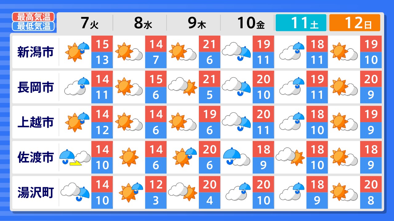 佐渡市 村上市 新潟市 阿賀町 長岡市 魚沼市 湯沢町 上越市 糸魚川市