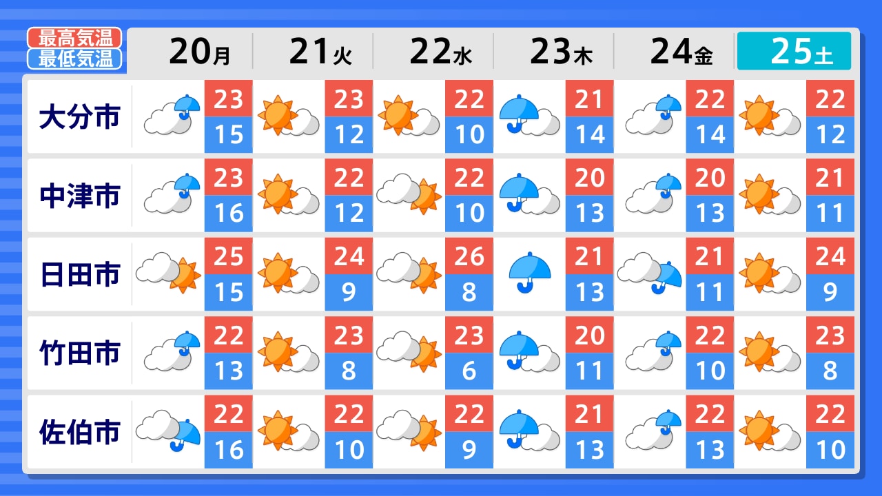 中津市 国東市 別府市 大分市 由布市 日田市 玖珠町 竹田市 豊後大野市 佐伯市