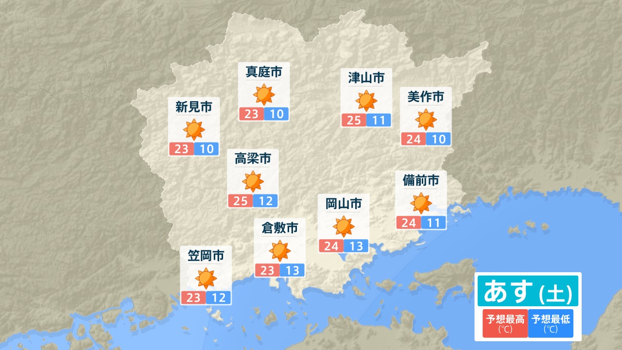 真庭市 新見市 高梁市 笠岡市 倉敷市 津山市 美作市 岡山市 備前市