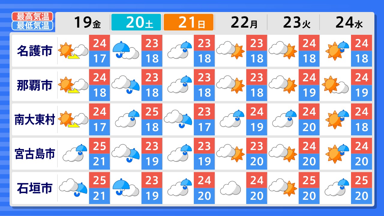 与那国町 石垣市 宮古島市 南大東村 名護市 久米島町 那覇市