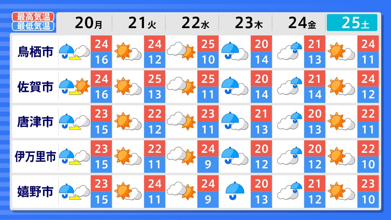 唐津市 伊万里市 武雄市 嬉野市 鹿島市 多久市 佐賀市 神埼市 鳥栖市