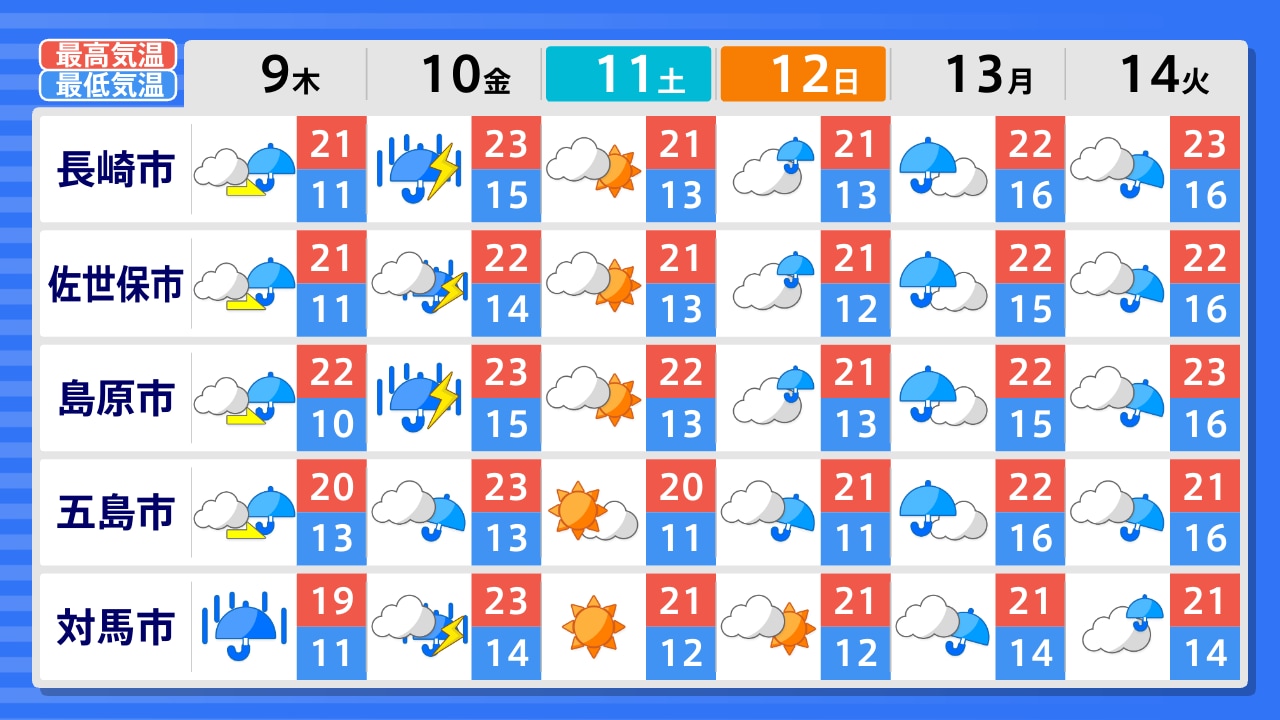 対馬市 壱岐市 新上五島町 五島市 平戸市 佐世保市 大村市 西海市 長崎市 諫早市 島原市
