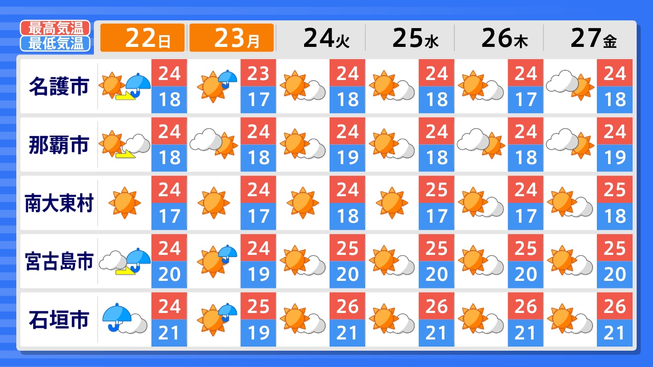 与那国町 石垣市 宮古島市 南大東村 名護市 久米島町 那覇市