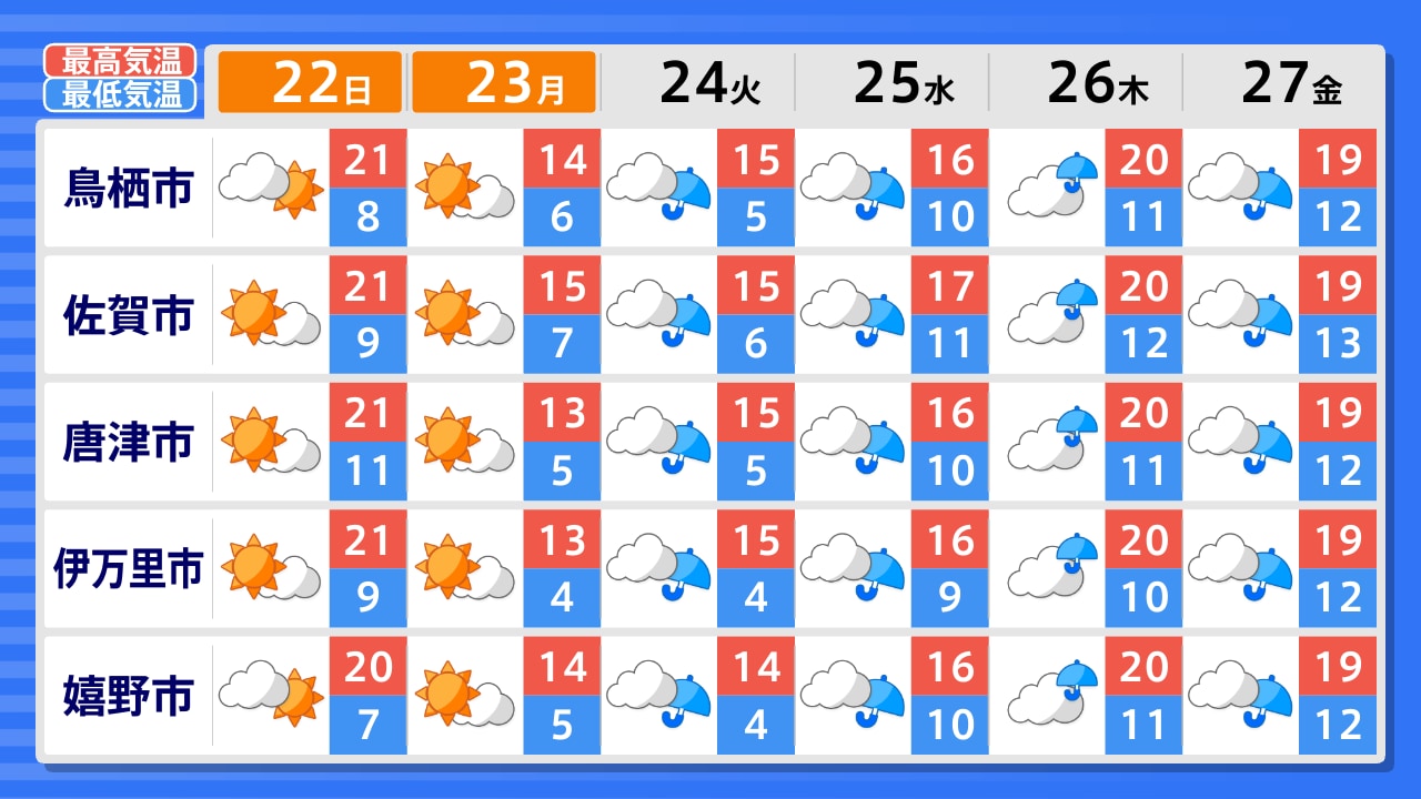 唐津市 伊万里市 武雄市 嬉野市 鹿島市 多久市 佐賀市 神埼市 鳥栖市