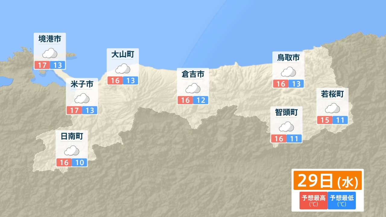 境港市 米子市 日南町 大山町 倉吉市 鳥取市 智頭町 若桜町