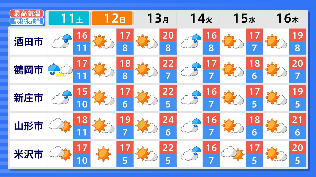 酒田市 新庄市 最上町 鶴岡市 寒河江市 村山市 山形市 長井市 小国町 米沢市