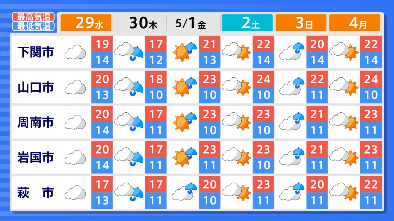 下関市 長門市 萩市 宇部市 山口市 周南市 柳井市 岩国市
