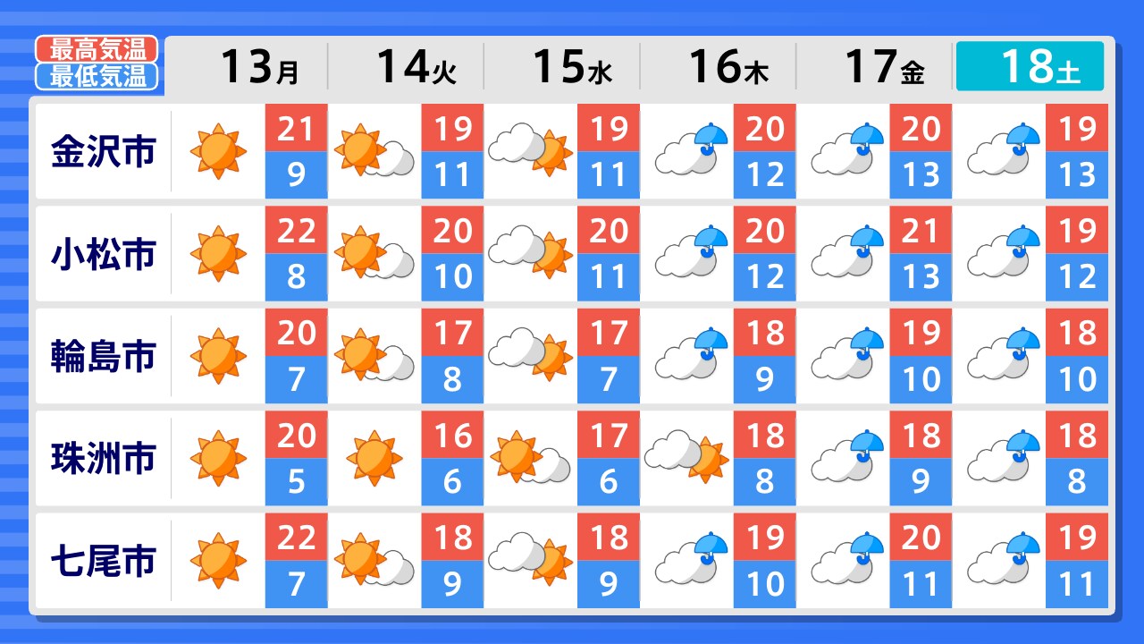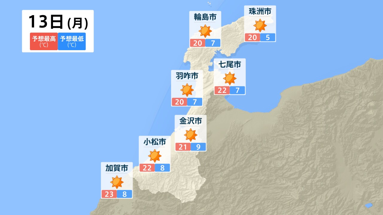 珠洲市 輪島市 七尾市 羽咋市 金沢市 小松市 加賀市
