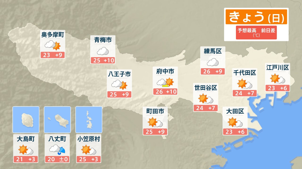 奥多摩町 青梅市 八王子市 大島町 八丈町 小笠原村 府中市 町田市 練馬区 世田谷区 千代田区 大田区 江戸川区