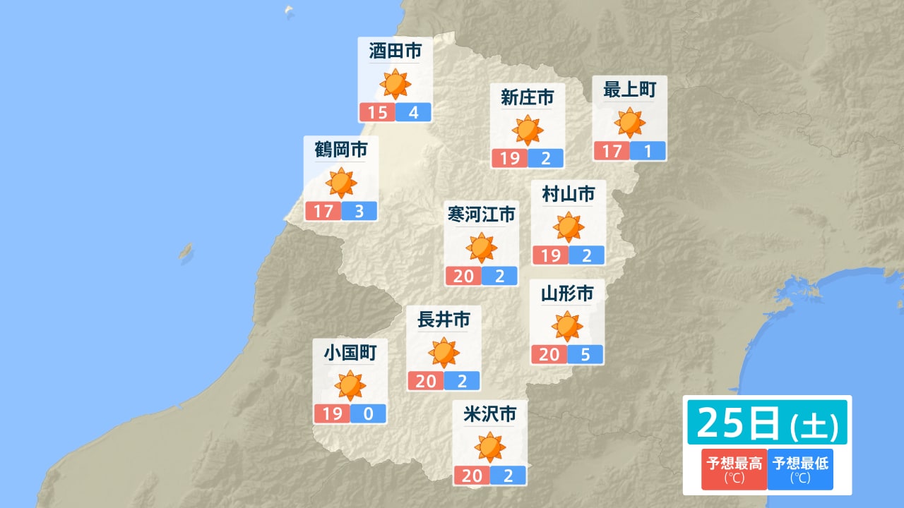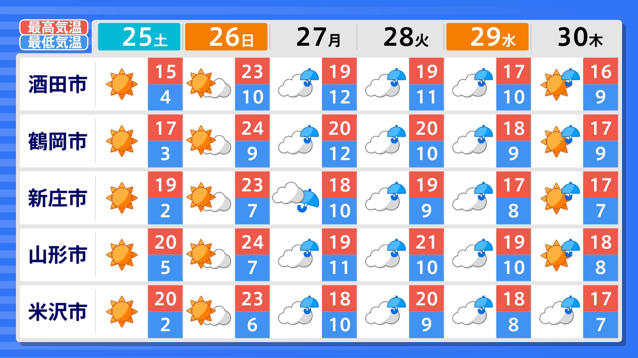 酒田市 新庄市 最上町 鶴岡市 寒河江市 村山市 山形市 長井市 小国町 米沢市