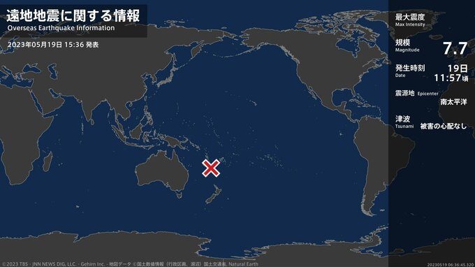 M7.7 南太平洋 2023年05月19日11:57ごろ 地震詳細