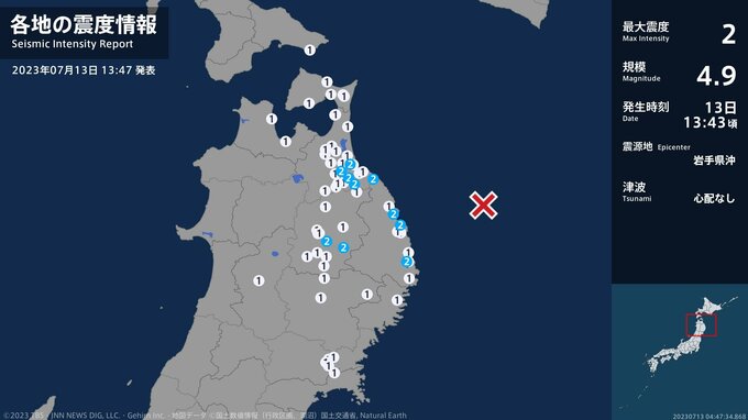 緯度経度 | 北緯40.2度 / 東経142.7度 |