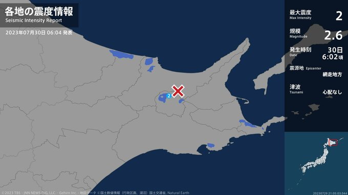 緯度経度 | 北緯43.7度 / 東経144.5度 |