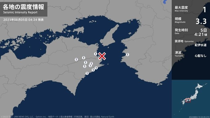 震度1 紀伊水道 04:21ごろ