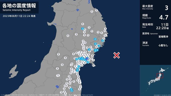 緯度経度 | 北緯38.7度 / 東経142.4度 |