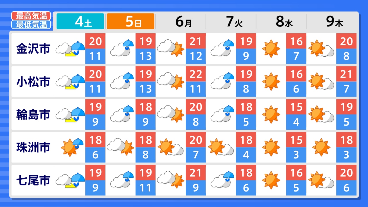 珠洲市 輪島市 七尾市 羽咋市 金沢市 小松市 加賀市