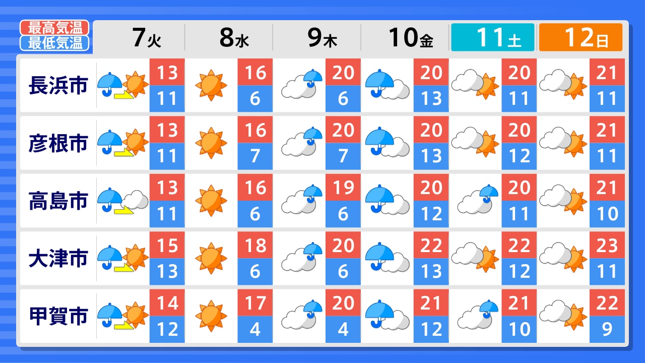 長浜市 高島市 彦根市 近江八幡市 大津市 甲賀市