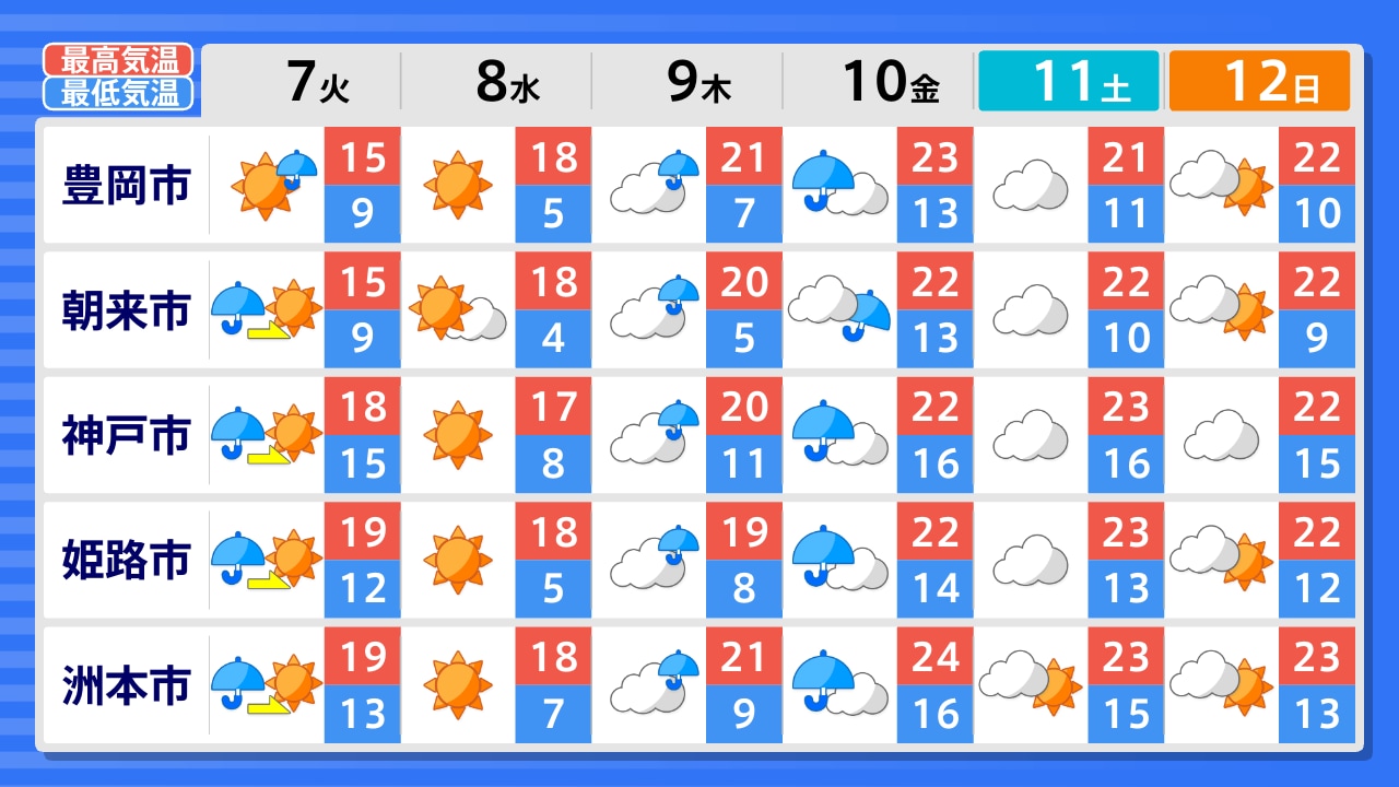 アイコンをクリックすると各地の天気に遷移できます。