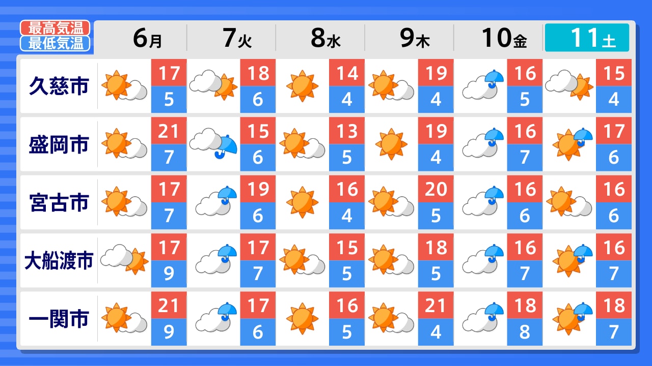 八幡平市 二戸市 久慈市 雫石町 盛岡市 岩泉町 宮古市 花巻市 遠野市 釜石市 一関市 大船渡市