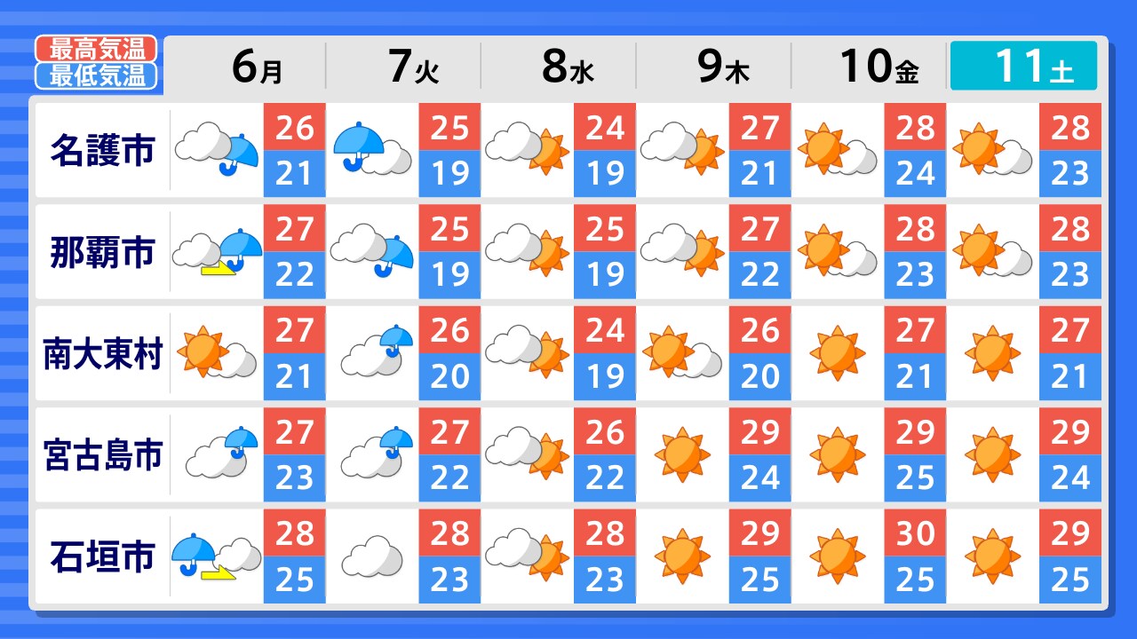 与那国町 石垣市 宮古島市 南大東村 名護市 久米島町 那覇市